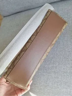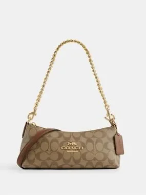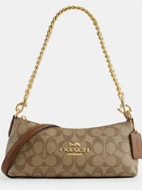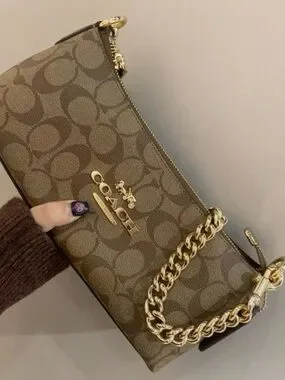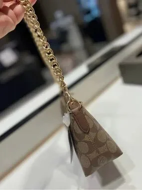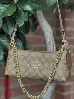 Coach Brown Signature Canvas Shoulder Bag with Gold Chain