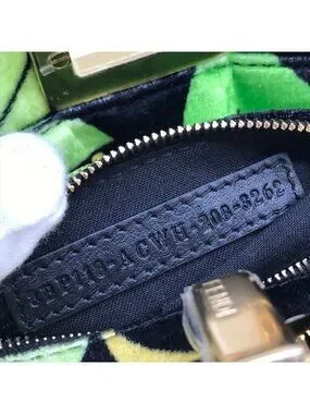 This is an authentic Fendi Peekaboo velvet shoulder bag in a vibrant green color. The bag features a bold floral print design in various shades of green, brown, and yellow, accented with gold-tone hardware.