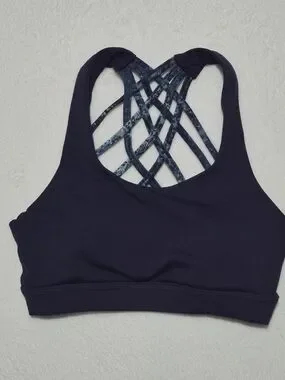 Women's Queenieke blue/multi strappy back sports bra with padding SIZE XS and in excellent condition!!