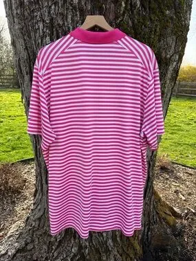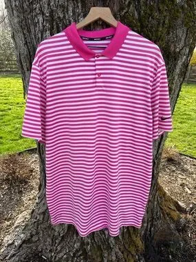 Men's Nike Golf Dri-Fit Victory Stripe Polo Pink and White Size XXL