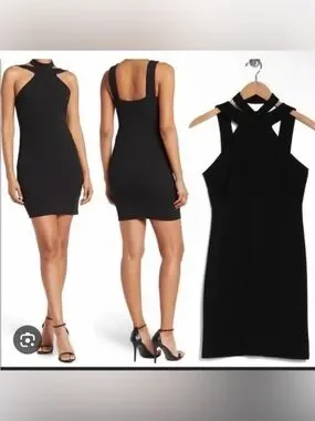 Bebe Women’s Halter top Black Dress With Choker Size Large