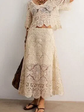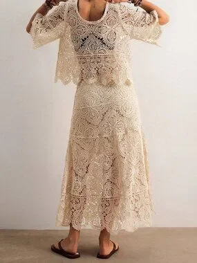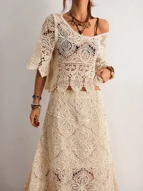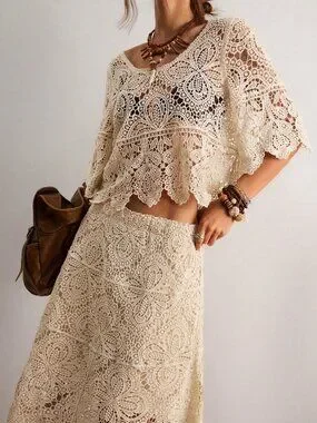 Apricot Elegant Women's Bohemian Crochet Knit Set