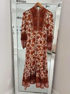 Zimmermann Rust and Cream Floral Maxi Dress