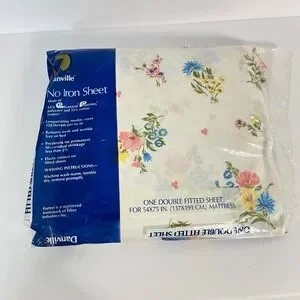 Vintage Danville Floral No Iron Double Fitted Sheet Pre-Shrunk USA NEW