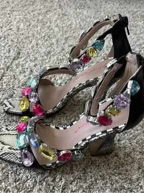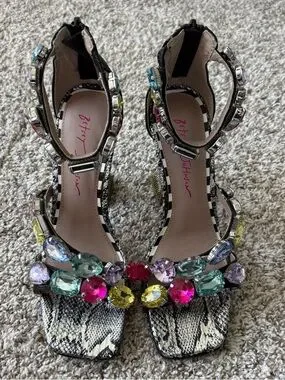 NIB Betsey Johnson Women's Lillie Jewel Detailing High Heel Dress Sandals Size 7- brand new in the box!