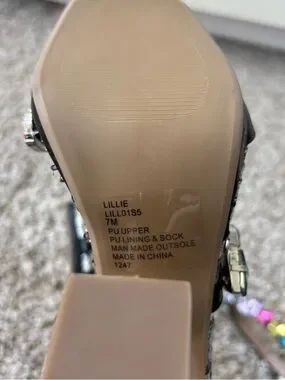 Betsey Johnson takes casual to a whole new level with a stylish sculpted heel dress sandal that makes any outfit pop. The Lillie has jewel detailing around the straps and has a fun printed colorful heel.