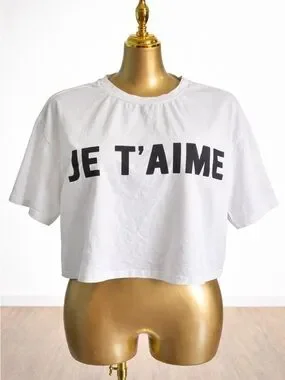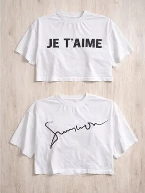 Lot of two - White Graphic Crop Tee - Script & Je T'aime Styles