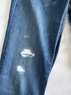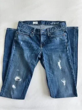 GAP Medium Dark Blue Distressed Straight-Leg Jeans 27 Long