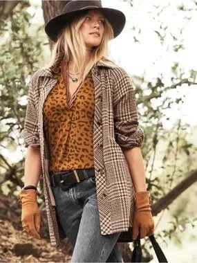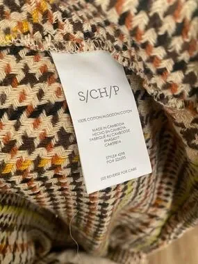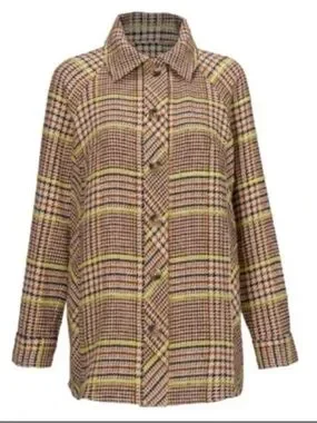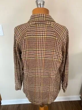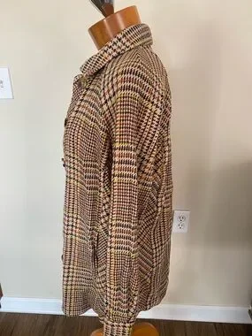 CAbi Yorkshire shacket jacket tan houndstooth cotton size S