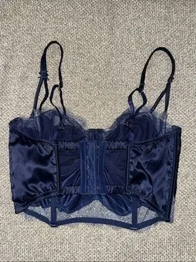 2. Victoria’s Secret dark blue lacy corset bra without padding in the cups but does have underwire for support. Worn a handful of times.