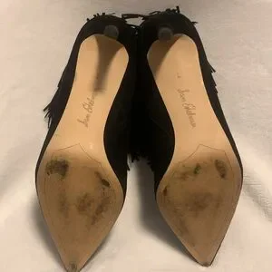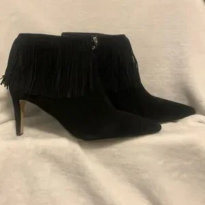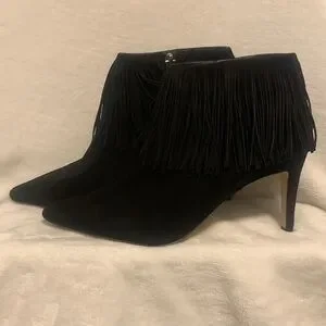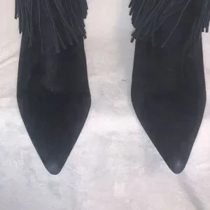 Sam Edelman Kandice Black Suede Pointed Toe Fringed Ankle Booties Boots Size 9.