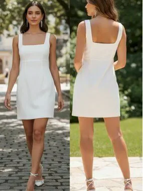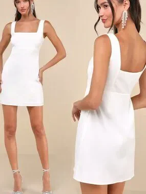 Lulus Truly the Cutest White Satin Square Neck Mini Dress Size Small NWOT