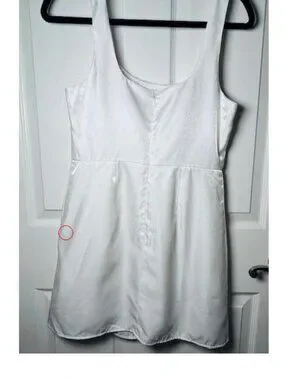 Lulus Flawed Truly the Cutest White Satin Square Neck Mini Dress Stain on back