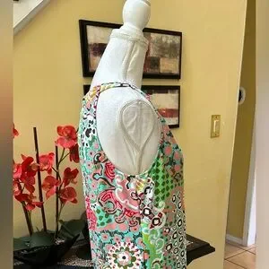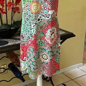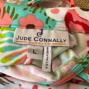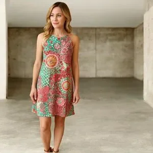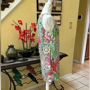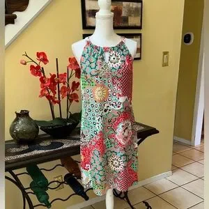 Jude Connally Abstract Medallion Print Coral Green Sz 14 Sheath Mini Dress USA