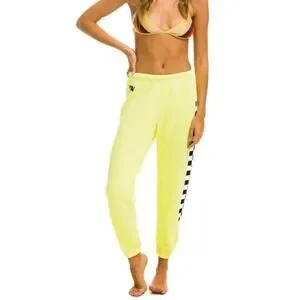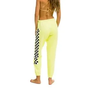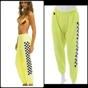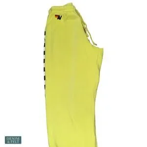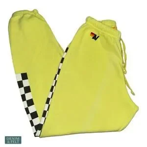 Aviator Nation Neon Yellow Checkered Stripe Sweatpants Jogger Retro Rare Small
