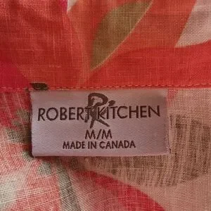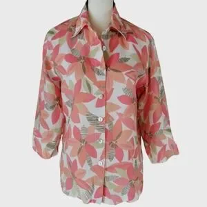 Robert Kitchen 100% Linen Tropical Print 3/4 Sleeve Button Front Blouse - Sz M