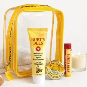 Burt’s Bees Travel Set + Clear Cosmetic Bag | Lotion, Lip Balm, Cuticle Cream