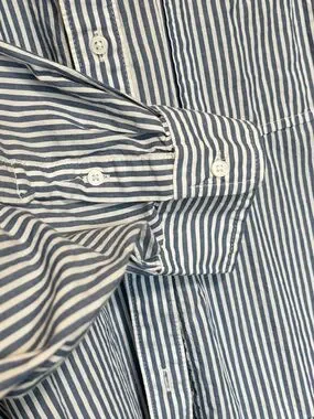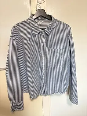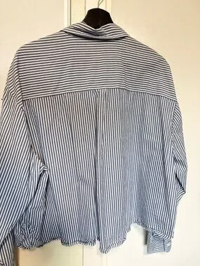 Old Navy Cropped Button Up Shirt Size XXL Blue and White Stripped