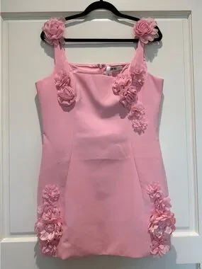 NWT JW Pei Elaina Pink Rosette Applique Mini Dress-Pink - Size 10