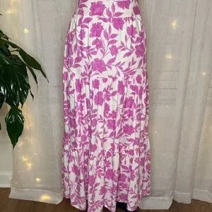Chic maxi skirt with pink floral pattern. Ideal for casual outings. Skirt is lined.