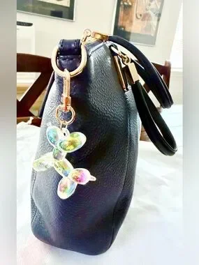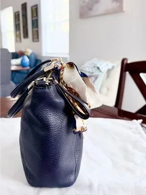 Coach Small Kelsey Satchel F34493 Navy Pebble Leather + Chain Crossbody