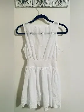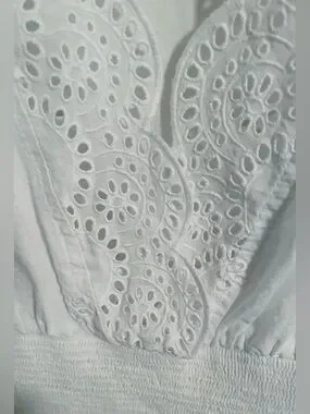 VENUS Vintage Mini Eyelet Sleeveless V-Neck Smocked Waist Sundress Fairy Boho 8