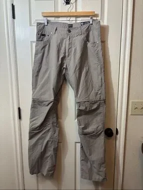 Kuhl men's chinos with zip-off convertible legs. Lightweight, breathable fabric for active wear. Multiple secure pockets for essentials. Neutral light taupe hue for easy pairing. EUC worn twice. See pictures h10