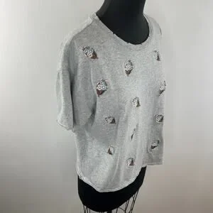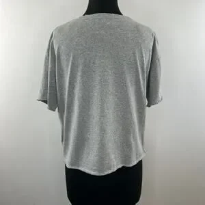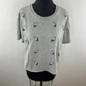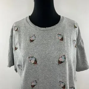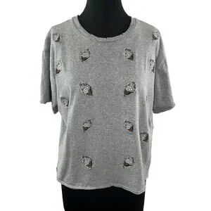 REBECCA MINKOFF Floral Embroidered T-Shirt Top Tee Gray Cotton Crewneck Size L