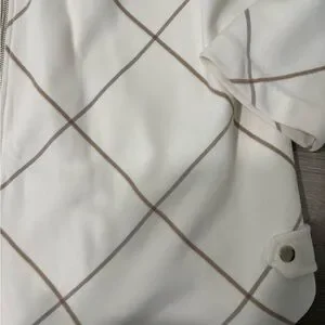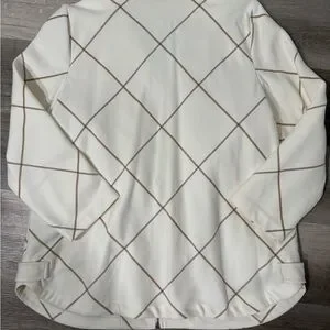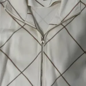Chico’s zip-front jacket featuring a clean cream base with a brown windowpane plaid pattern. Classic and versatile, this piece works well for workwear, travel, or everyday layering. Soft, structured fabric with a flattering drape and stand collar for a polished look.