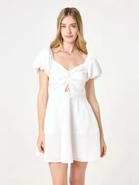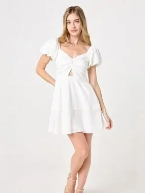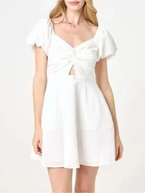 Trixxi White Mini Dress Puff Sleeve Fit Flare Cottagecore Summer