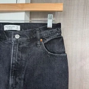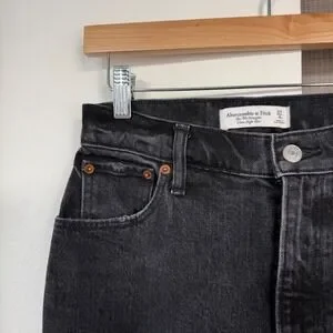 Discover your perfect denim with these Abercrombie & Fitch jeans. Designed to flatter your figure, the super high rise waist accentuates your natural shape while the straight leg silhouette offers a modern yet timeless look. The deep black wash provides a versatile foundation for countless outfits, seamlessly transitioning from day to night. These jeans are ideal for a casual brunch or a stylish evening out.