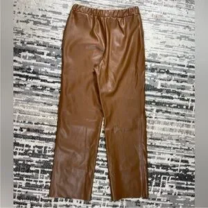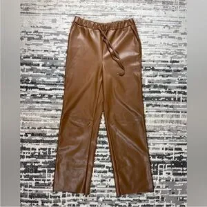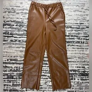 Seven Sisters Highrise Beige Wide Leg Faux Leather Joggers Size Medium