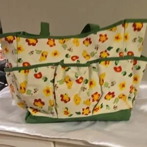 This is the cutest little gardening bag ever and I wish I had a little garden so I could fill this with some gardening tools. It has a pretty green interior and a cute floral pooh design with many pockets on the outside and one zipper pocket on the inside. It's from the Disney Store and it measures 11.5"x11.5"x5.5"