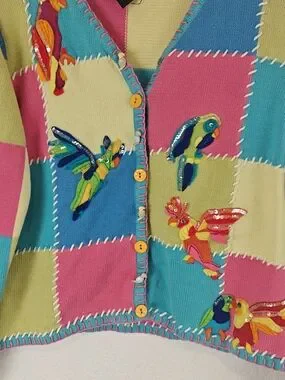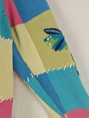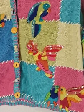 VTG Christina Rotelli Patchwork Bird Cardigan Embroidered Cottagecore M/L