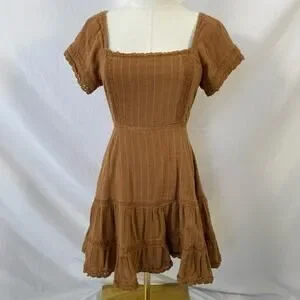 American Eagle brown ruffle midi dress size xs boho cottagecore