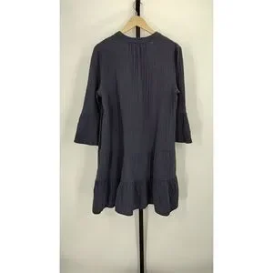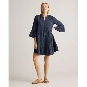 Quince 100% Organic Cotton Gauze Long Sleeve Tiered Mini Dress Indigo M