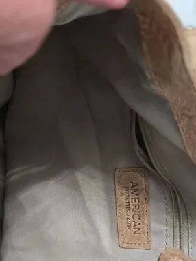 American Leather Embossed Floral Shoulder Bag in Tan