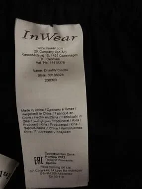 InWear Copenhagen, DrizaIW Culotte, wide leg pants, linen pants women, culotte pants, black linen trousers, Scandinavian fashion, Danish brand, drawstring pants, linen viscose blend, wide leg trousers, cropped pants women, minimalist pants, size 8 pants, EU 36 pants, resort wear, elevated basics, Copenhagen style