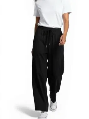 InWear US8 DrizaIW Culotte Women Medium Black Linen Wide Leg Drawstring Pants