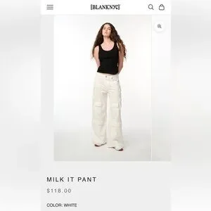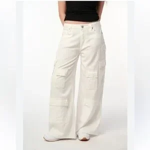 BLANKNYC Baggy White Cargo Utility Cotton Jeans in Milk It NWT
