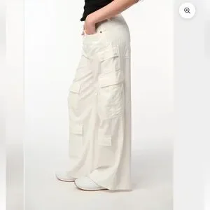 BLANKNYC Baggy White Cargo Utility Utilitarian Cotton Jeans in Milk It NWT