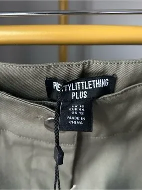 PrettyLittleThing Plus Olive Khaki twill high waist Cargo Trousers size 12 NEW