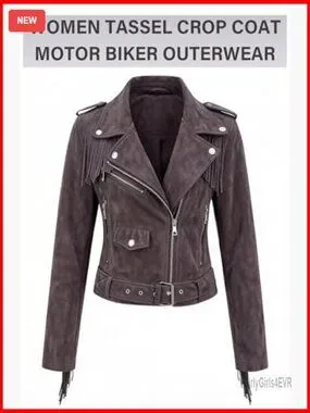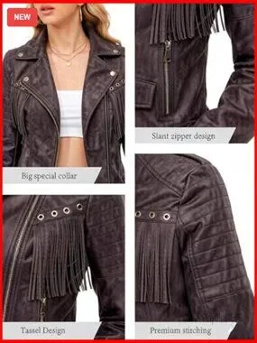 Style: Short moto jacket with tassel trim