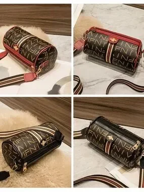 Monogram Barrel Crossbody Bag Letter Print Bee Gold Hardware 4 colors-NIP