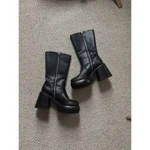 Delia's Dolls Kill New Moon Mid Calf Chunky Black Platform Boots Goth 9 Grunge