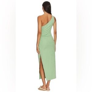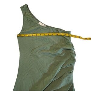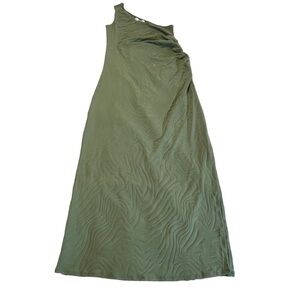 Seafolly One Shoulder Second Wave Midi Dress in Palm Green Textured Vacation M