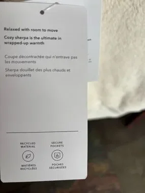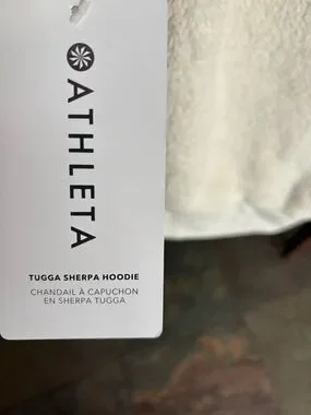Plush sherpa fleece hoodie in the color “Natural”. Attached hood with drawcords. Ribbed cuffs and hem. Soft, warm & cozy. Woman’s size XXS. Brand new with tags.
