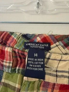 Vintage Y2K Plaid Patchwork Low Rise Mini Skirt Sz 14 American Eagle Outfitters