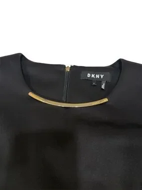 DKNY Black Sleeveless Fit-and-Flare Dress with Necklace Detail