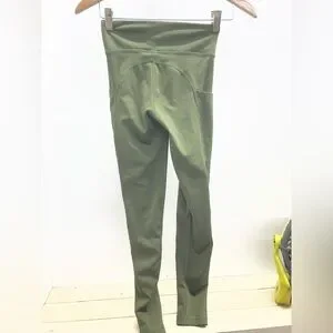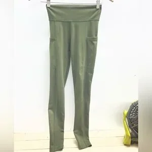 Chic olive leggings with side pockets. Perfect for casual wear. Soft and stretchy fabric.